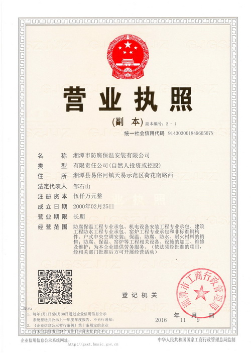 版權(quán)所有:湘潭市防腐保溫安裝有限公司 地址:湘潭縣易俗河鎮(zhèn)荷花南路西(天易示范區(qū))